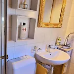 A Traumhaftes Appartment In Ascona Nur 200M Vom Lago Maggiore Entfernt fürdőszobája hajszárítóval és törölközőkkel felszerelt. Emellett talál külön WC-t és zuhanyzót.